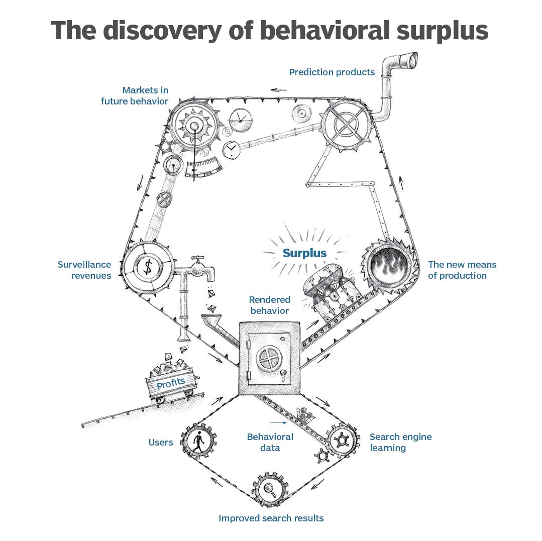 Companies like Facebook and Google make money by selling advertising on prediction markets. This requires ever more surveillance of users and non-users to produce more valuable predictions.