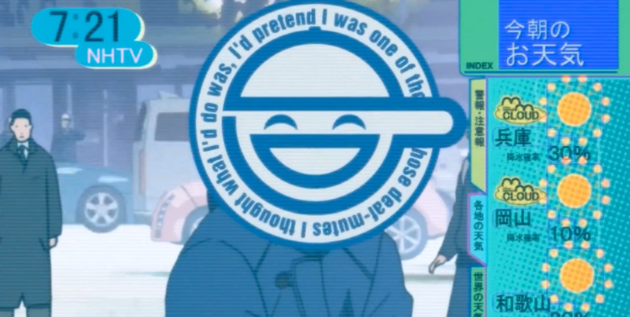 Back when I was I was watching it on fansubs, they mistranslated one of the phrases as, “The Flow will Swallow you.” and that seemed extremely fitting of the show’s themes and tension.